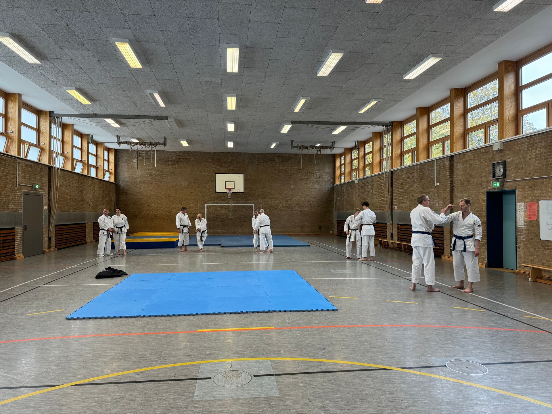 Am 04.05.2024 fand ein Selbstverteidigungslehrgang vom Karate Club Hannover mit Andreas Modl (8. Dan AKS, 8. Dan Wado Ryu, 8. Dan Chi Do Kwan Kobudo) statt. In den ersten 2 Std. hatten Teilnehmer ohne jegliche Kampfsporterfahrung die Möglichkeit, verschiedene einfache aber effektive Selbstverteidigungstechniken zu erlernen. Danach ging es dann über weitere 3 Std. mit allen Teilnehmern zur Vertiefung des erlernten weiter. Anschließend wurde dann noch eine Selbstverteidigungskata, die Kansetsu Kata Shodan, von allen Teilnehmern erlernt.